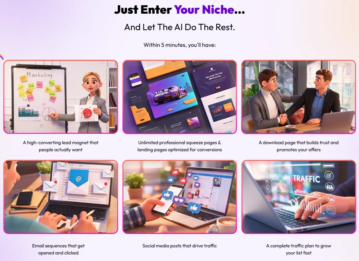 The system provides step-by-step traffic strategies tailored to your niche and budget. These plans cover both free and paid traffic, including social media tactics, email marketing, and content marketing.