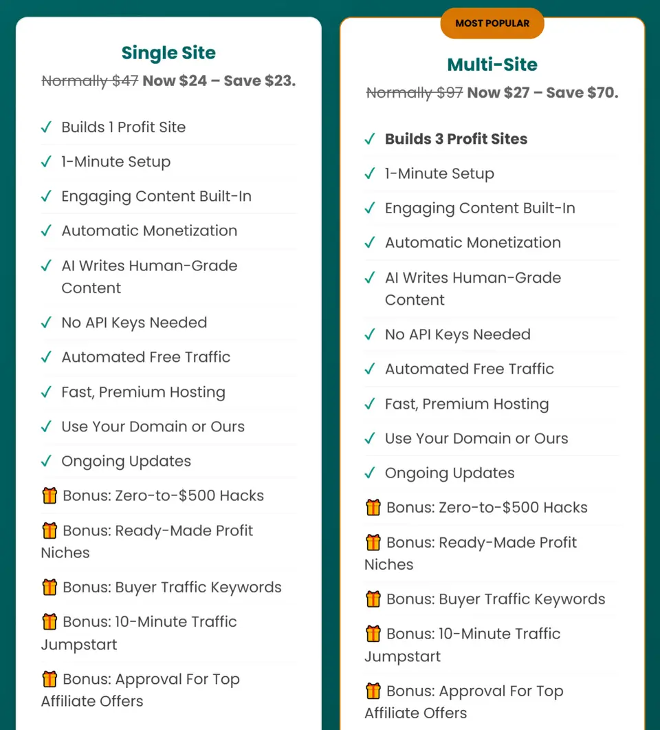 Even though both plans are affordable, I strongly recommend going with the Multi-Site plan. For a small price difference, you unlock a lot more value. You get the full feature set, Commercial Rights, and all the bonuses, which makes it the smarter choice for anyone who wants the best version of the system without limitations.