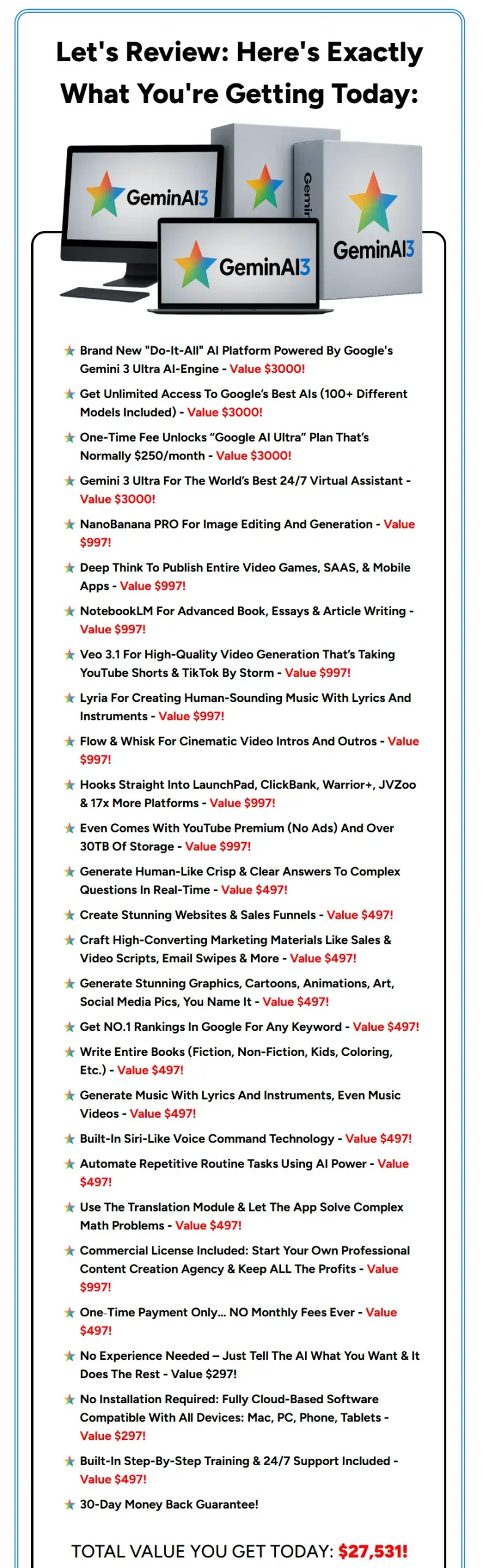 If you purchase the GeminAI3 app today, you will receive all exclusive bonuses below for TOTALLY FREE from the author team. Access is available within the product’s main member area.