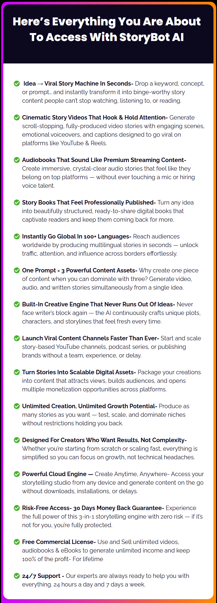 Pre-built AI prompts are included to generate content quickly. These are designed to create conversion-focused material for different niches without needing copywriting skills.