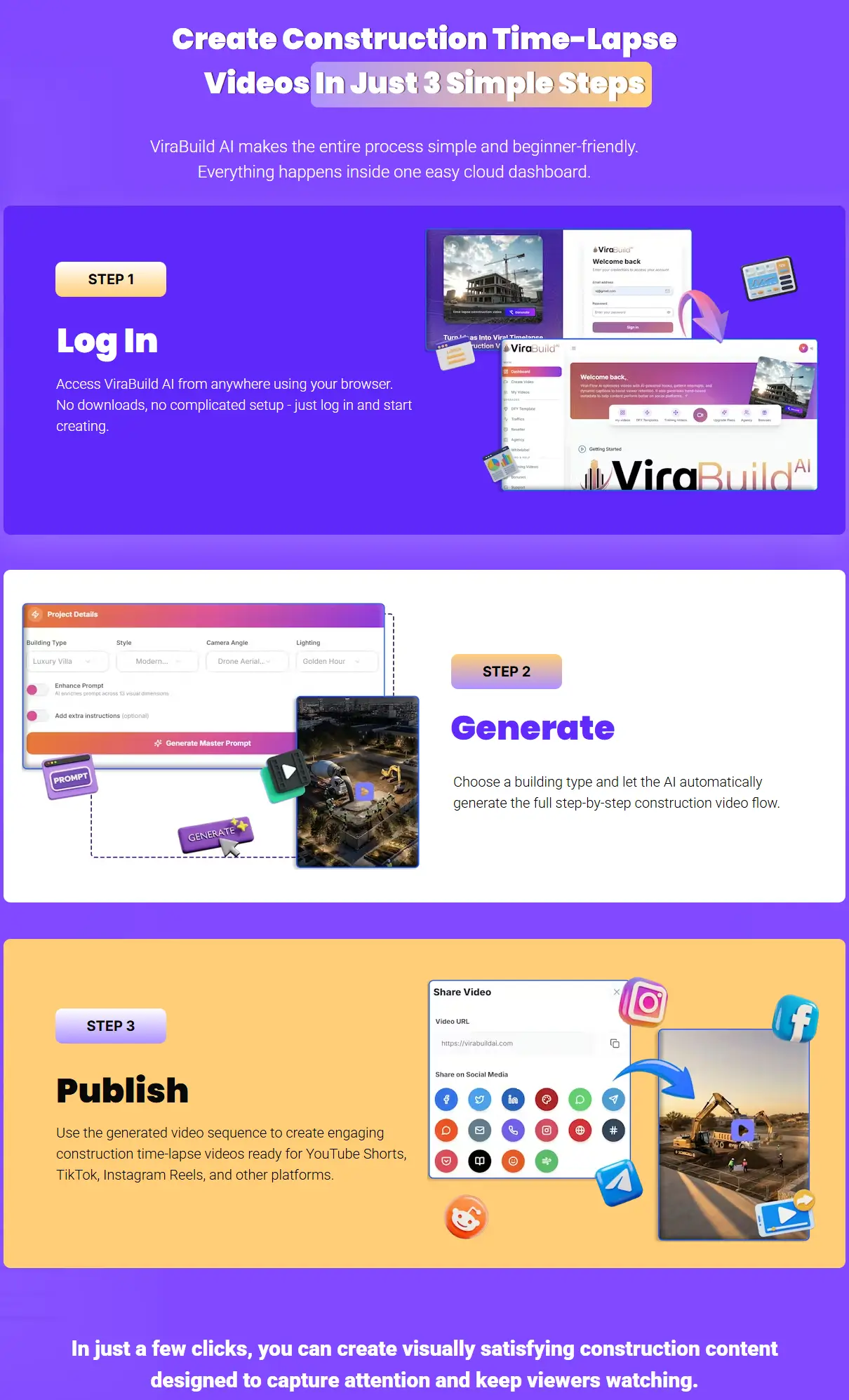 A simplified process that allows you to build and launch sites quickly using AI.