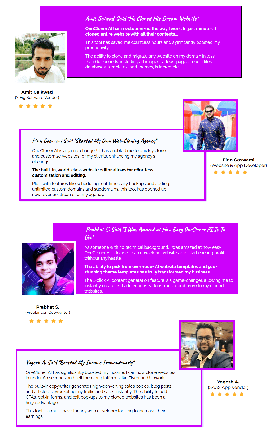 This OneCloner AI is for those who want professional, beautiful websites without having to spend time building them from scratch. Even if you are a newbie with no experience or no ability related to technology, nothing matters because OneCloner AI will take care of all the difficult stages.