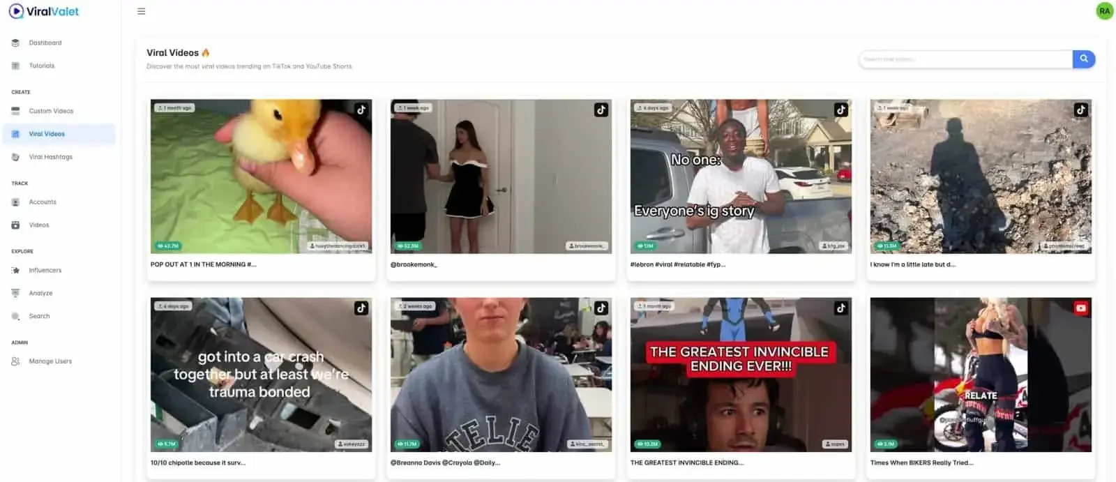 The dashboard is intuitive and easy to navigate. Within minutes, I was searching for viral content, analyzing what worked, and choosing a video to recreate.
